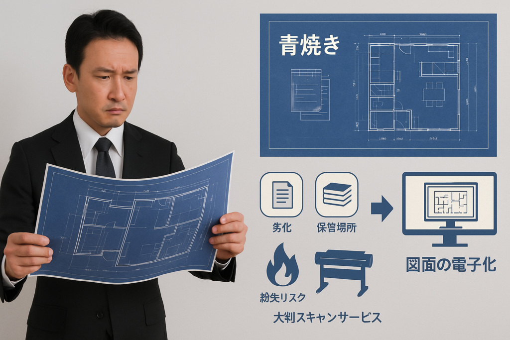 青焼きは歴史的に重要な図面コピー方法でしたが、現代の業務においては電子化と大判スキャンが必須の時代となっています。保管スペースの削減、情報共有の効率化、そして災害からのリスク回避まで、多くのメリットがあります。