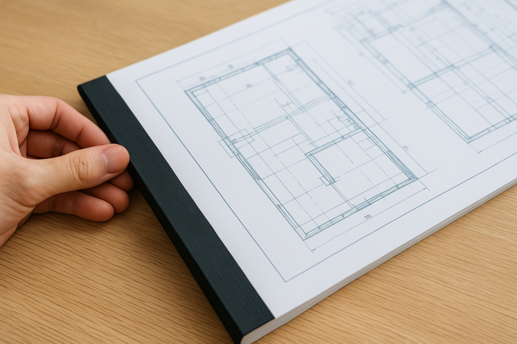 大きな図面は折り方や綴じ方が複雑で、素人では均一に仕上げるのが困難です。特に観音製本などは、仕上がりに差が出やすいため、専門業者に任せるのが安心です。